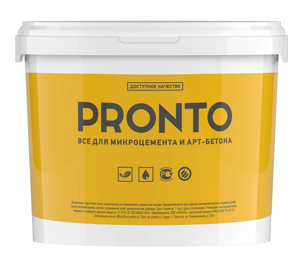 Расход ведра 5 кг на 7 кв.м. в 1 слой. Декоративное бесшовное покрытие для покрытия полов и стен в интерьере и на фасадах зданий. Поставляется в пластиковом ведре в виде сухой смеси для удобства затворения. Внутри каждой упаковки вы найдете мешок с микроцементом и флакон с жидким колорантом, который нужно развести в воде перед затворением в ней микроцемента.