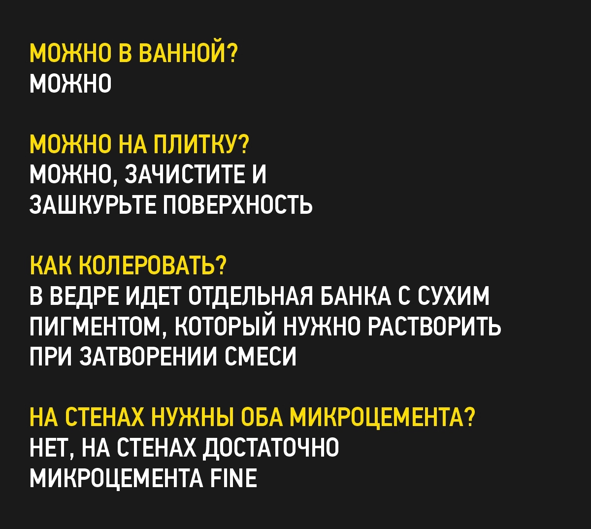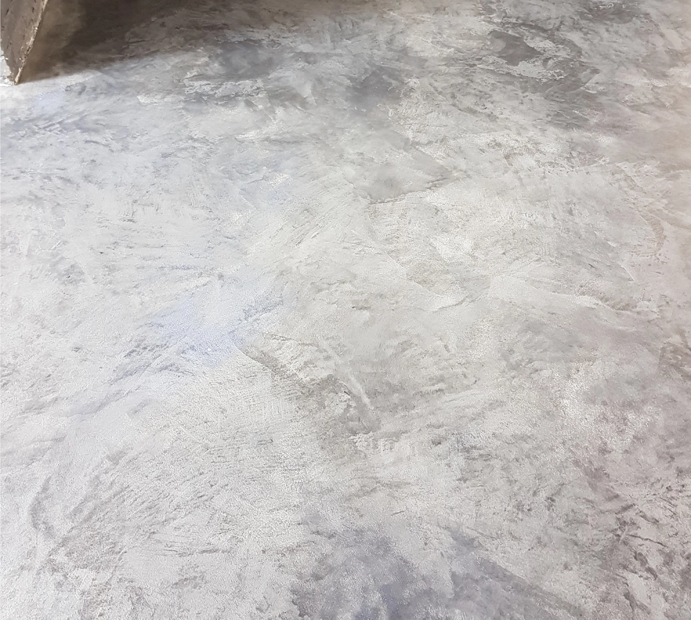 Базовый микроцемент содержит в своем составе армирующие стеклосферы, которые при затирании могут оставлять мелкие бороздки, поэтому вторым слоем наносится Микроцемент Fine, который позволяет получить гладкую поверхность. Для стен с бытовой нагрузкой можно обойтись исключительно Микроцементом Fine.