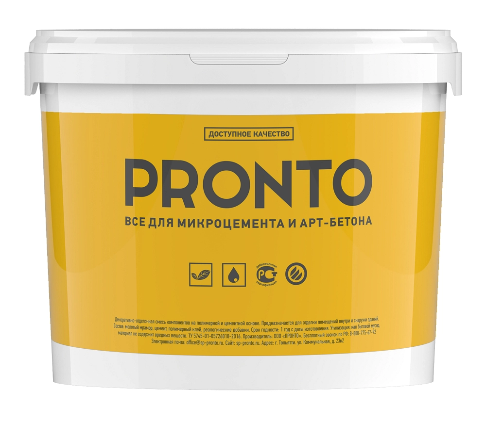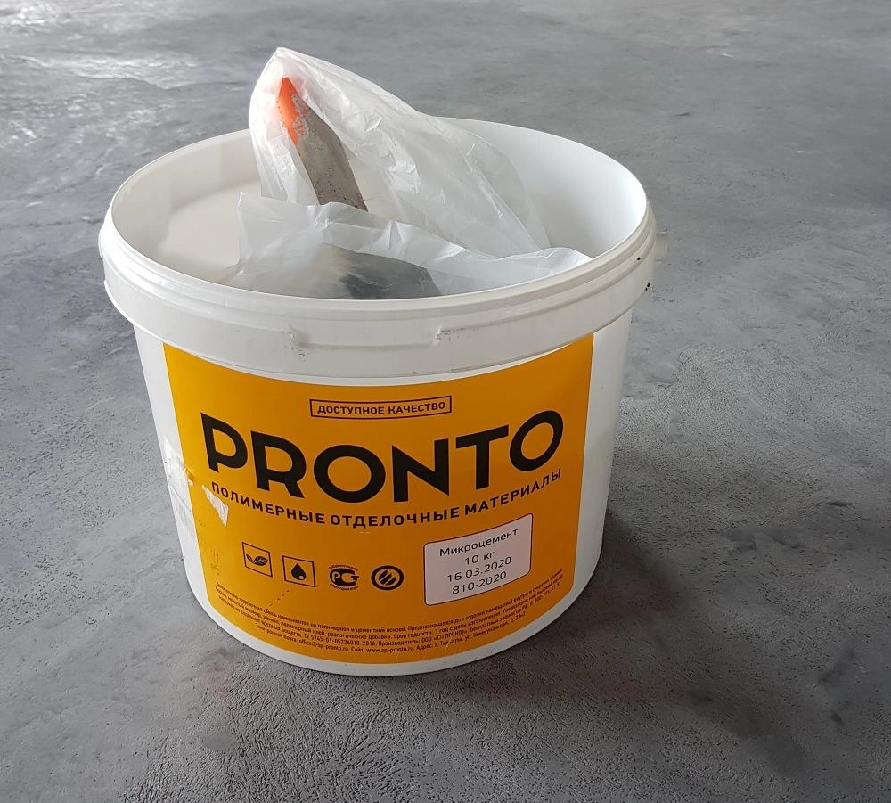 Расход ведра 5 кг на 7 кв.м. в 1 слой. Декоративное бесшовное покрытие для покрытия полов и стен в интерьере и на фасадах зданий. Поставляется в пластиковом ведре в виде сухой смеси для удобства затворения. Внутри каждой упаковки вы найдете мешок с микроцементом и флакон с жидким колорантом, который нужно развести в воде перед затворением в ней микроцемента.