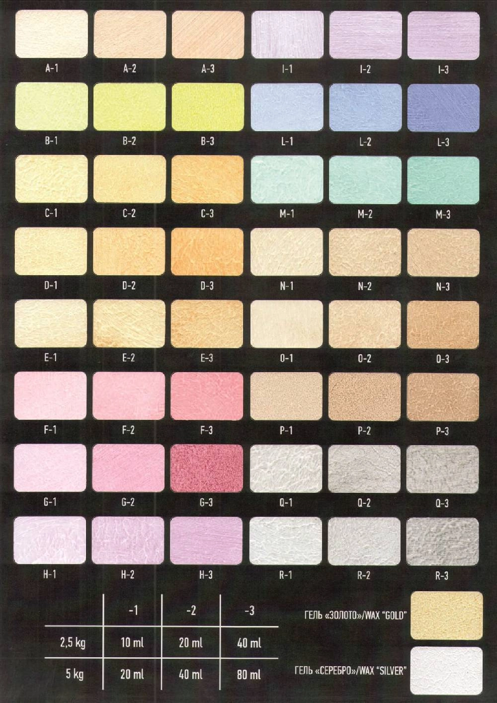 Декоративные штукатурки наносятся в белом цвете. Придайте покрытию желаемый цвет путем нанесения поверх слоя декоративного геля "База"(рассчитайте требуемое количество с помощью калькулятора "под ключ").