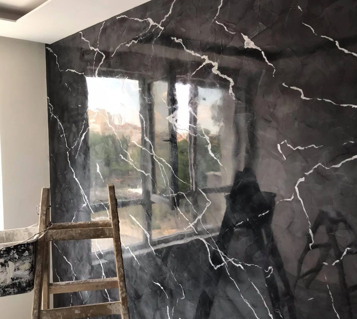 Особенностью данной декоративной штукатурки является высочайшая белизна молотого мрамора, что позволяет достичь высокой степени глянца. Наносится на предварительно подготовленную, зашпатлеванную поверхность.